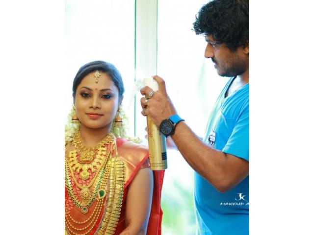 JK MakeOvers is an initiative of well known passionate professional Makeup artist Jayesh Krishna, Best provides Bridal Makeup all over Kerala. He tries and accentuate each indiviauls natural beauty. His forte and inclination is more towards bridal make and more concentrated to natural features.